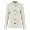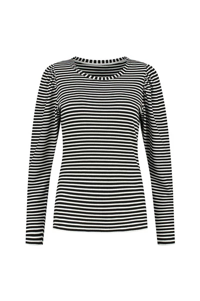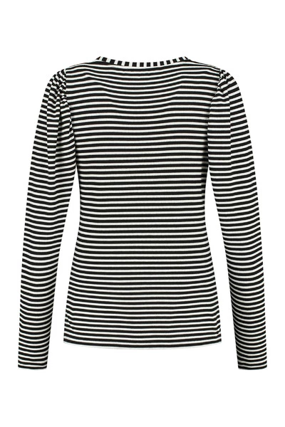 Deze Oden-top heeft een ronde halslijn met een pofmouwtje.
