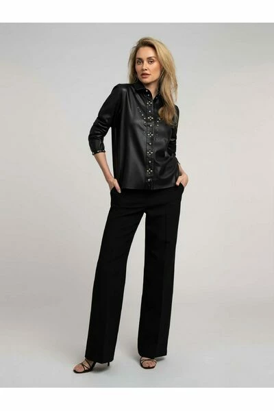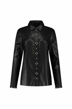 Vegan leer maakt elke outfit beter! Het Maki Shirt heeft studs, pofmouwen en drukknopen. Je kunt deze blouse dragen met de Myles Trousers of met de Noki Wide Leg Trousers voor een complete vegan leather look. Blouse Vegan leer Kraag Drukknopen Studs Was instructies: niet wassen. Met een vochtige doek afnemen. Om verkleuring en vlekken te voorkomen, gelieve dit artikel niet in contact te brengen met donkere (vegan) leren kledingstukken, stoffen of oppervlakken. Volg de onderhouds- en reinigingsinstructies om de originele staat te behouden. FH.6-515.22059000 MATERIALS Materiaal Kleur: Black Samenstelling: 100% Polyurethane Stretch: No stretch Pasvorm Model draagt: maat 36 Lengte model: 177 cm Fit: Regular Lengte: Medium Mouwlengte: Long sleeve Mouwlengte maat 36: 80 cm Totale lengte maat 36: 64,5 cm